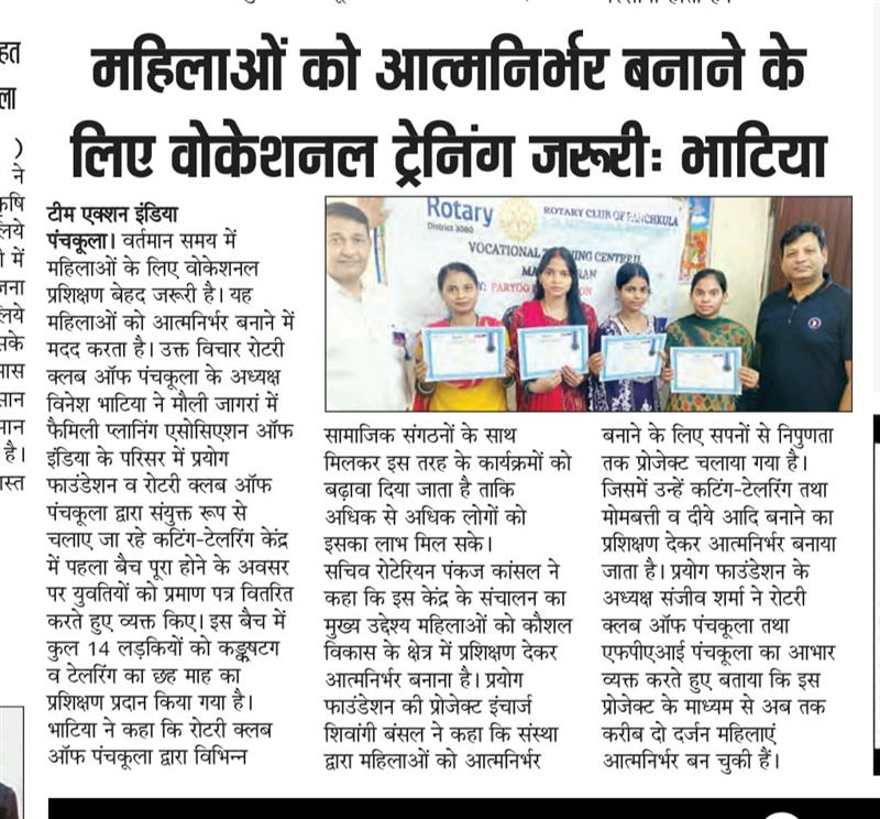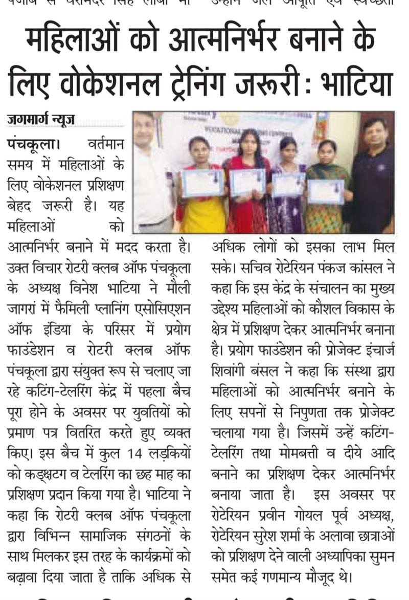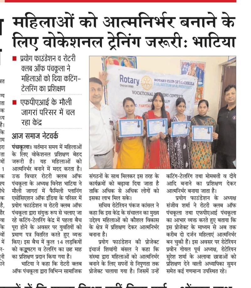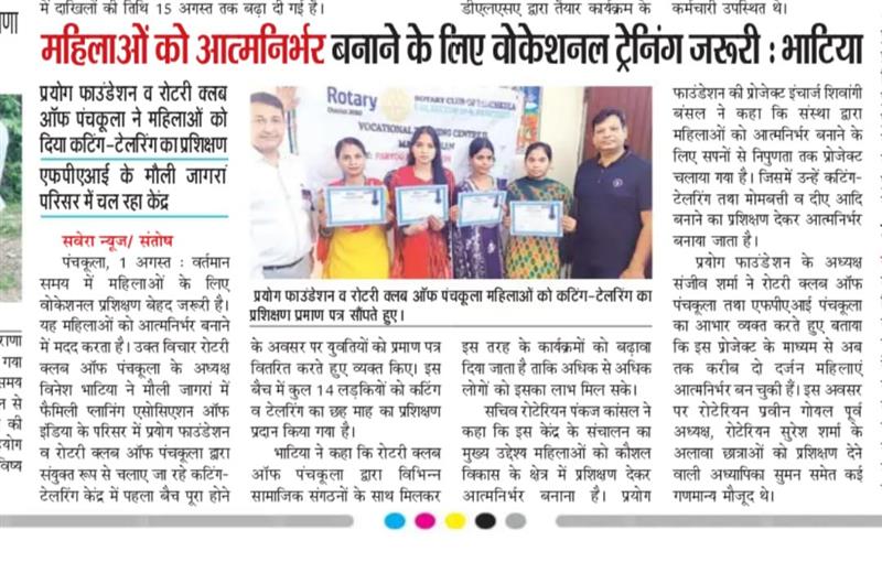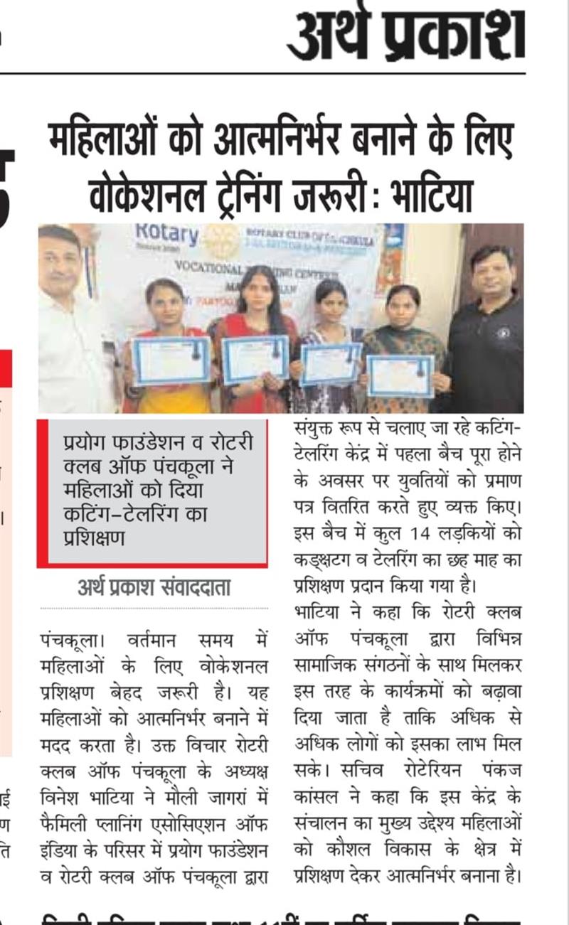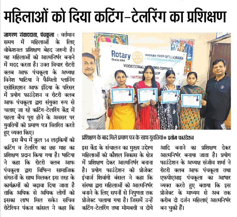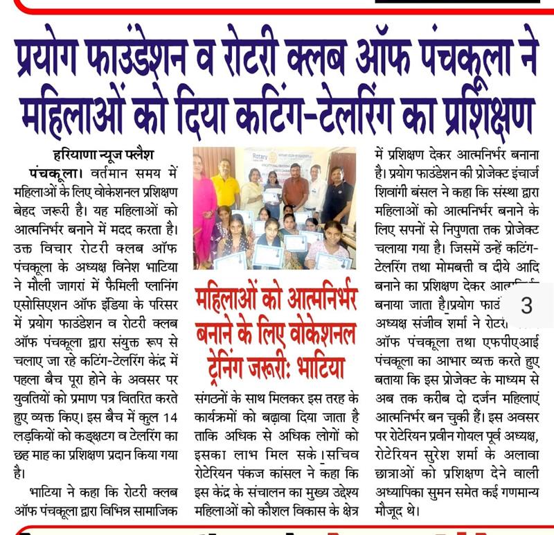 प्रयोग फाउंडेशन द्वारा महिलाओं को आत्मनिर्भर बनाने के लिए आयोजित कटिंग टेलरिंग कोर्स में प्रमाण पत्र वितरित किए गए