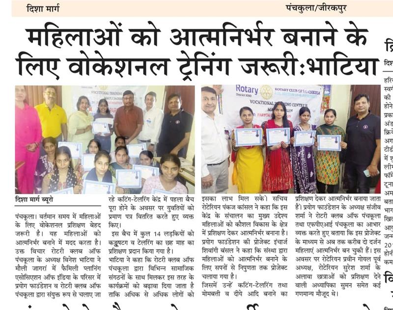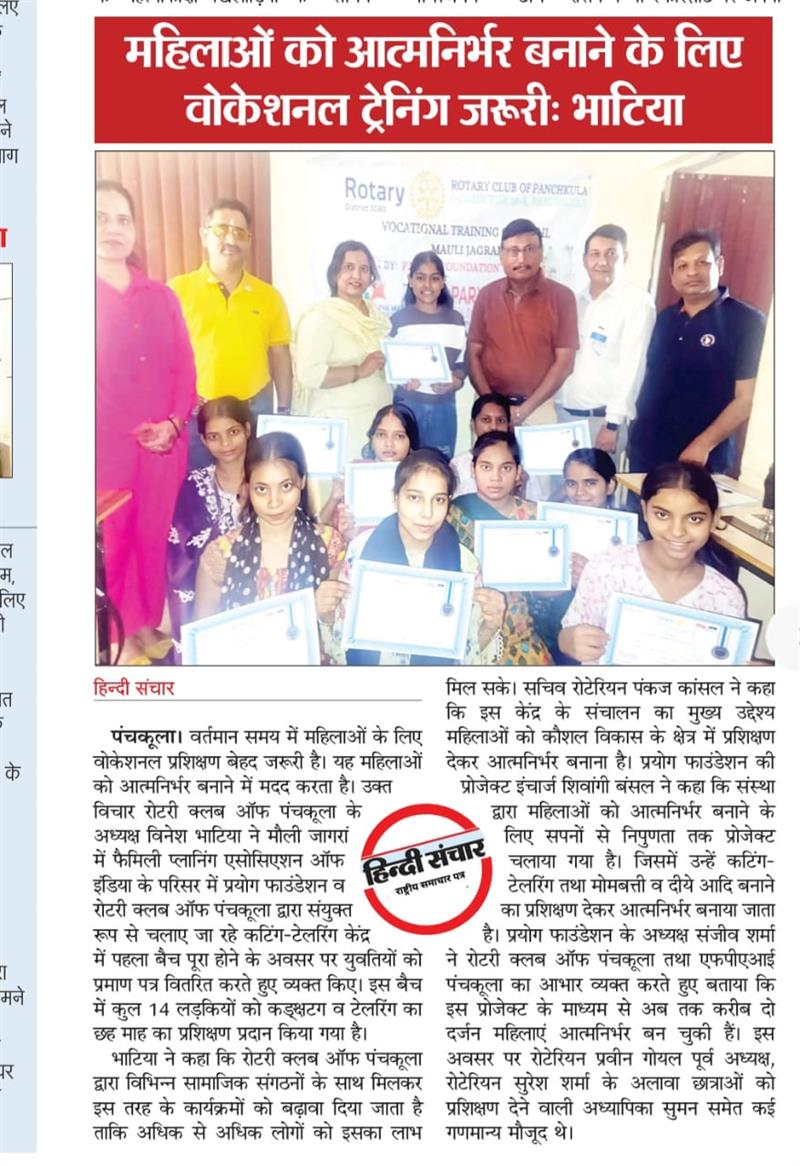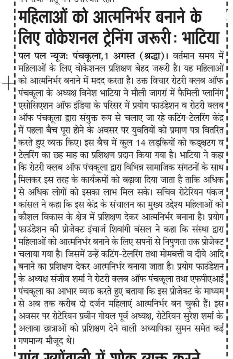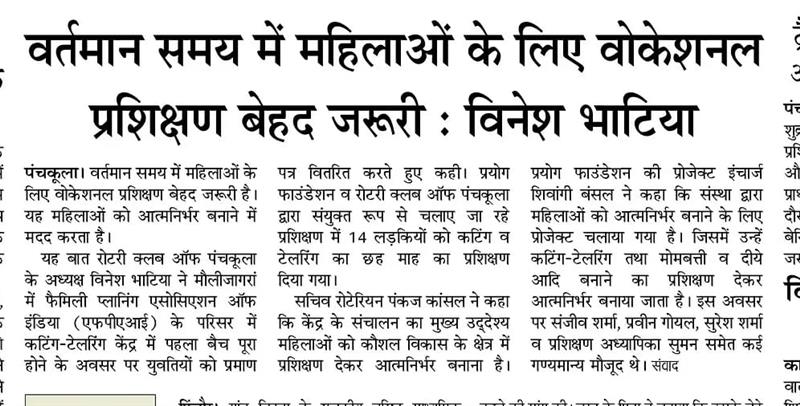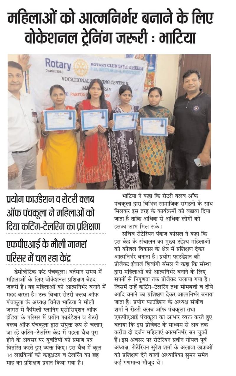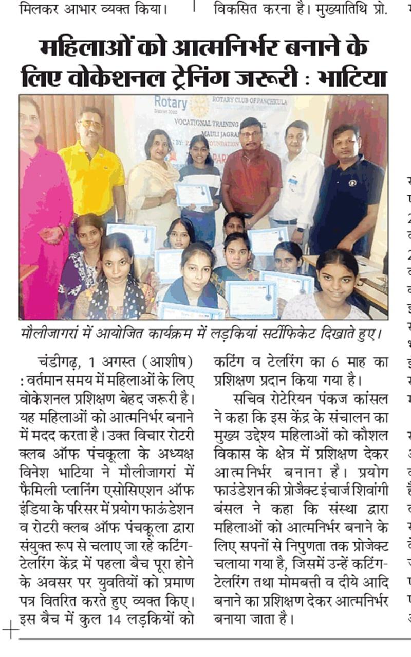 प्रयोग फाउंडेशन द्वारा महिलाओं को आत्मनिर्भर बनाने के लिए आयोजित कटिंग टेलरिंग कोर्स में प्रमाण पत्र वितरित किए गए